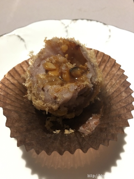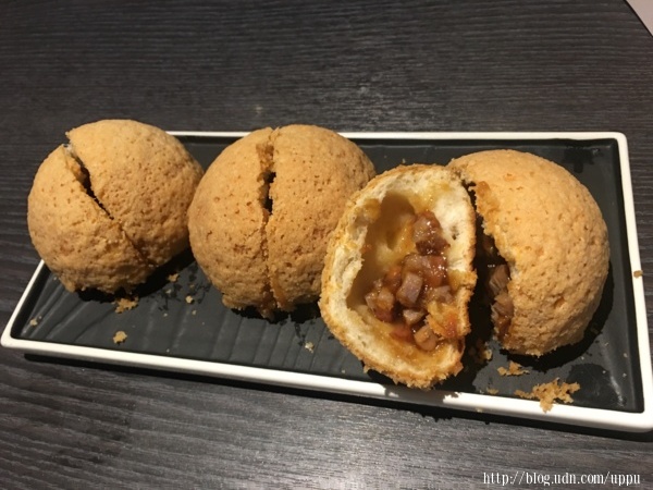 這真的還蠻好吃的。有機豆腐混合著蔥花及蝦漿捏製成枇杷(有像嗎?)炸成的。