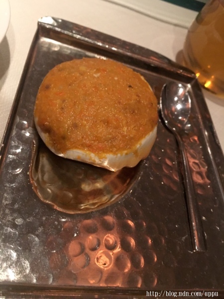 蟹粉釀蟹蓋,一吃覺得溫度不對溫溫的,請店家拿去重做(菊花是有多餓~整個吃光),店家也很好心確認過後二話不說馬上重做,後來上的果然熱燙,蟹粉吃溫的那滋味不好受啊~熱呼呼的才好吃。
