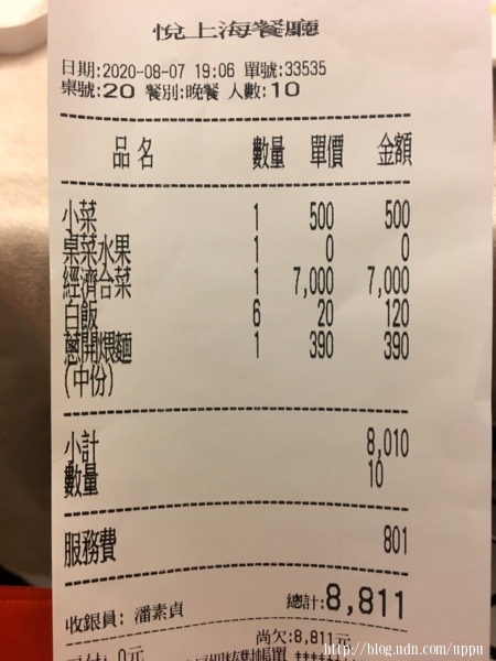 老媽壽宴,點桌菜7000。