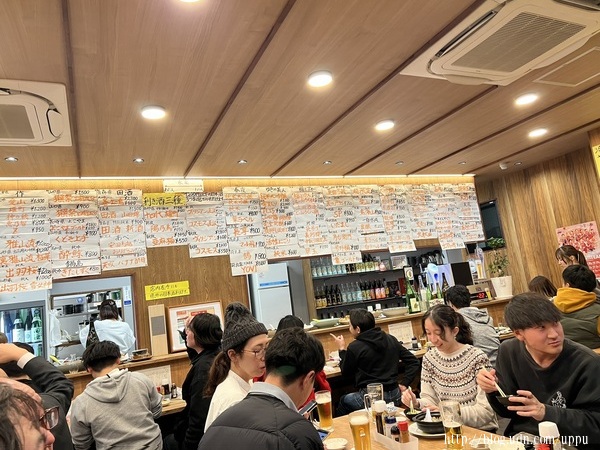 這才是我心中最理想的居酒屋樣貌,大家都坐在一起熱鬧無比,但又沒有尖銳大聲喧嘩,就是人聲鼎沸而已。