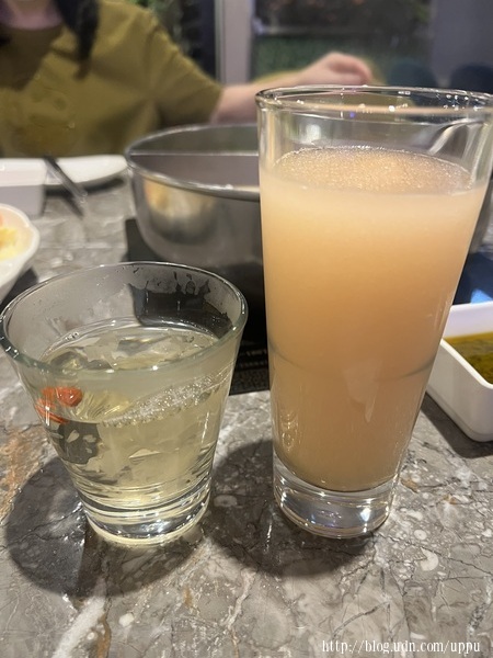 每人都有一杯飲料,我點熱枸杞白木耳、室友點葡萄柚冰沙、娟點梅子冰沙。