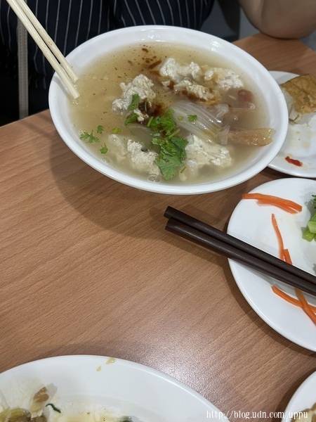 下雨天只有我跟Toby兩人出來,我吃蝦仁羹粄條