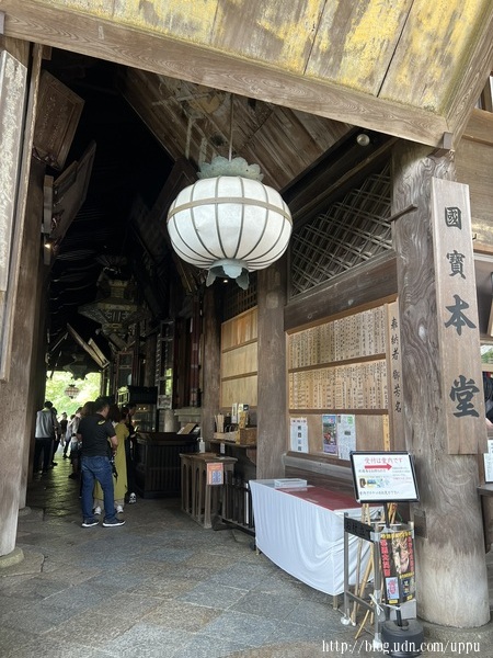 登上有399層階梯的長廊後便可來到正殿。被指定為國寶的正殿為入母屋造本瓦葺風格,建在陡峭的懸崖之上。殿前有一個延伸出去的木造舞台,從這裡放眼望去的景色相當壯觀。