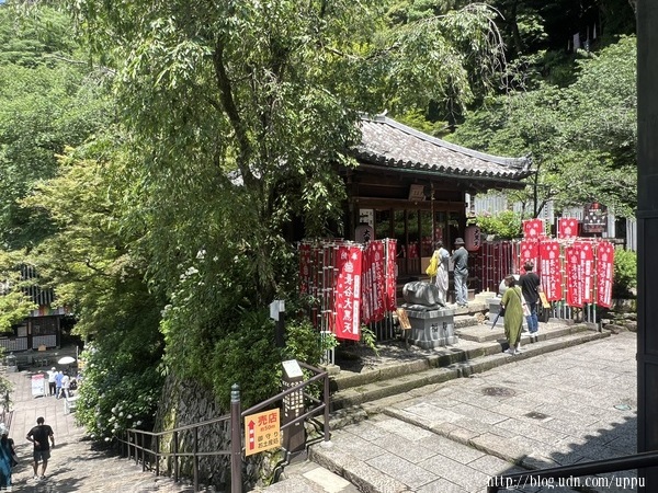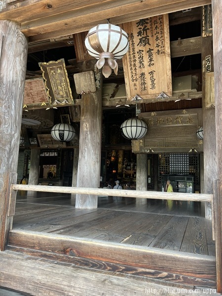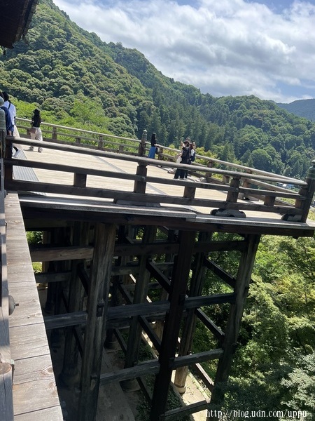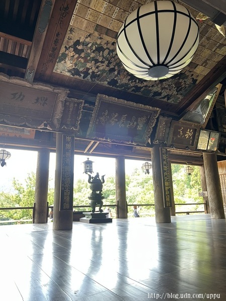 正殿前的木造舞台環繞於大自然中,從這裡放眼望去的景色令人歎為觀止,這有點像清水寺那樣,只是這在半山腰比較有風。