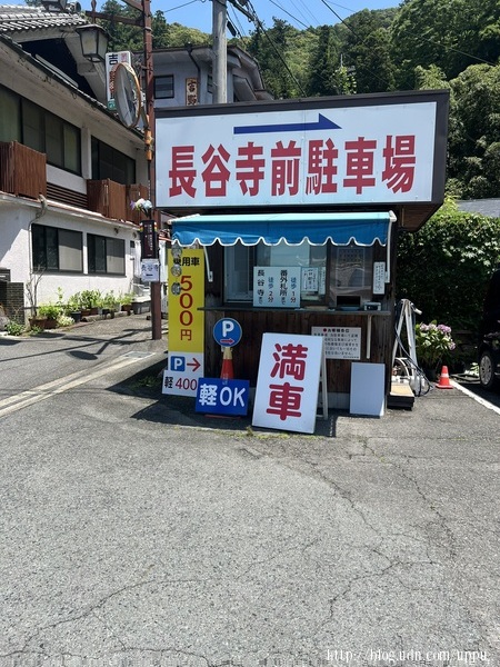 有停車需求的,沿著路開很多停車場所,但就勇往直前開到最接近長谷寺就對了,每個地方停車費都是500,當然要選最接近的,可以少走些路。