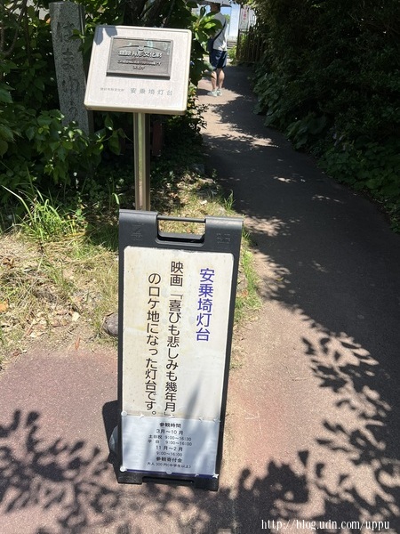 安乘埼燈塔是全日本也少有的四方形燈塔,附近有一間安乘埼燈塔資料館,展出燈塔的歷史與資料等。