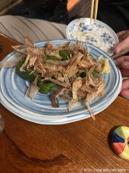 烤長岡野菜,沒想到全是青椒,馬上吃光,因為娟會過敏。
