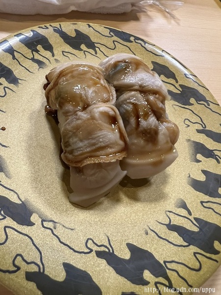 單點的鮑魚,迴轉壽司的還是過硬、有腥味,下次不再點了~