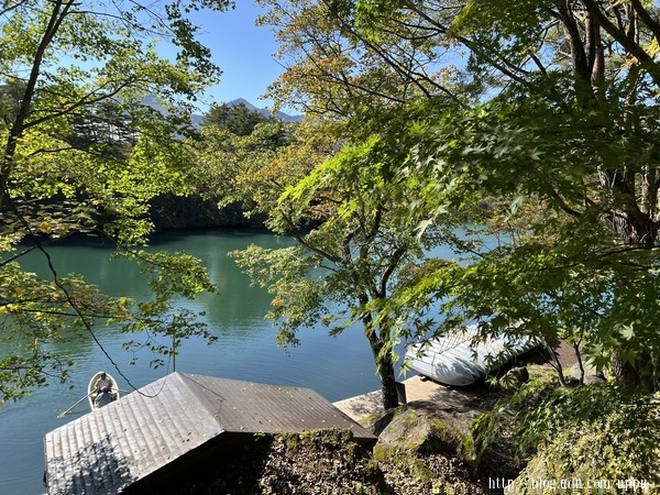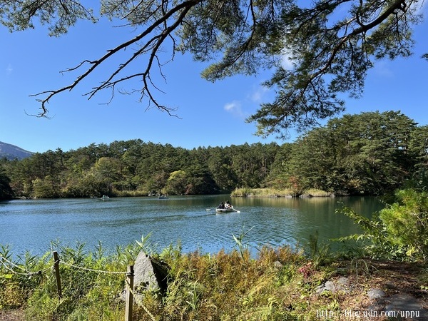 第一個經過的就是面積最大的毘沙門沼能划船遊覽。湖沼裡有很多鯉魚,據說要是能找到身上有紅色心形紋樣的鯉魚,就能獲得幸福。