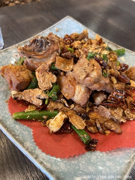 招牌辣椒雞,鹹香下飯,比較偏大陸那種乾煸的作法。