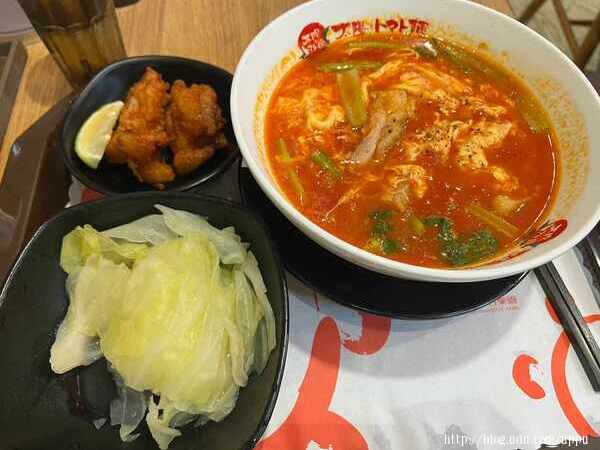 我點太陽滑蛋拉麵加套餐(高麗菜/炸雞)