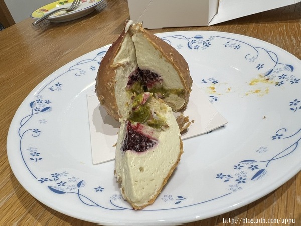 開心就好,開心果& 黑醋栗果醬口味,但第一個地瓜口味比較綿密。