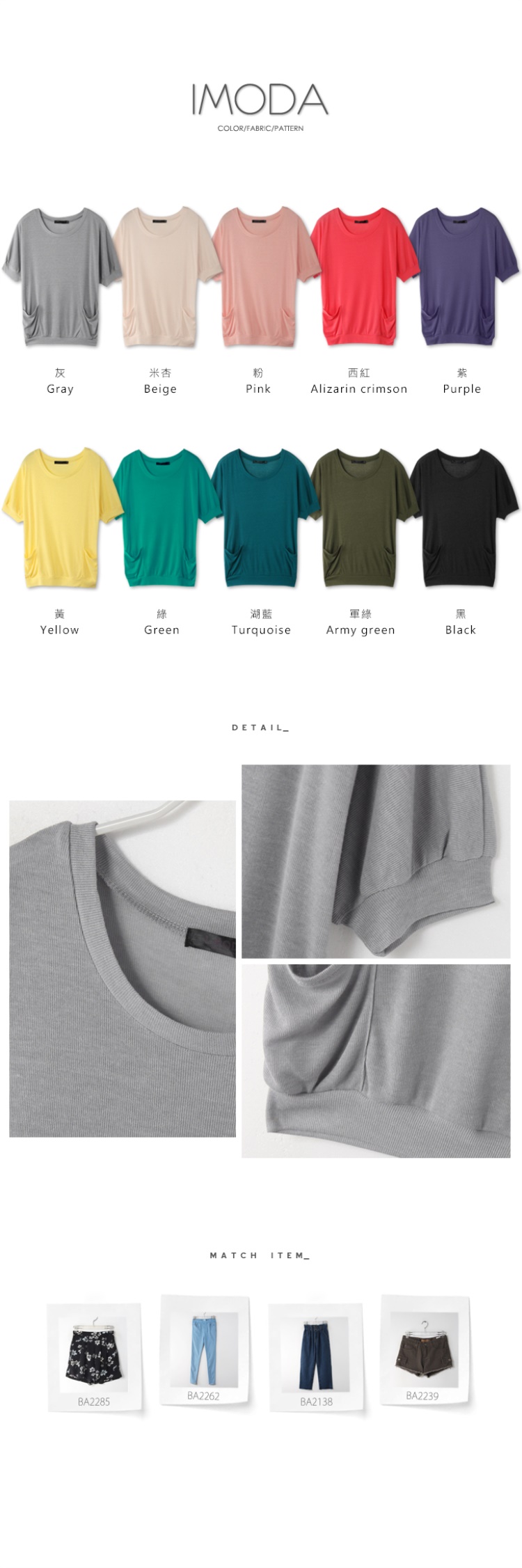 【當季熱銷?限時79折】 素色雙口袋造型飛鼠袖圓領上衣.10色