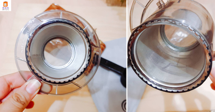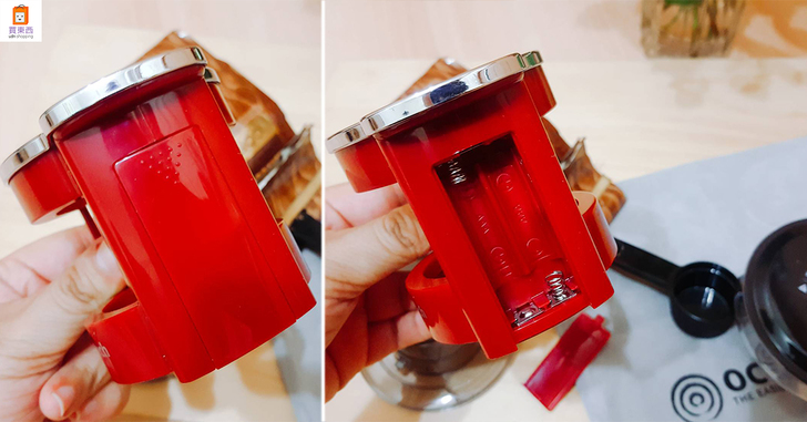 它的設計是依靠電池驅動,共需要兩顆4號電池,裝好電池後就可以準備來享受一杯香濃的咖啡啦~量勺一平勺倒入金屬濾網內,把濾網跟咖啡機主體組合後架在杯子上,再放上水箱,咖啡師朋友建議淺焙的豆子,適合搭配溫度90-97度的熱水,深焙的豆子則可以用80-90度的熱水,沖泡出來會是最適合的風味,水箱容量大小是150ml,一次可以沖泡一杯。