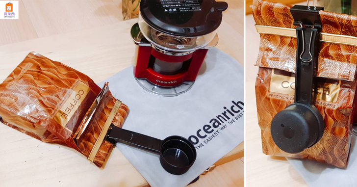 咖啡粉量勺的設計非常特別,可以密封咖啡粉外包裝,同時也可以夾在外袋上做使用,咖啡粉量勺一勺的量是8g,剛好是沖泡一杯咖啡所需要的量,使用上更直覺。