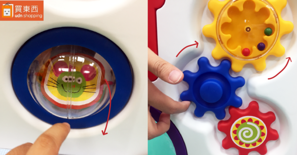 最後的球球滾滾和轉轉齒輪,更可以訓練寶貝的手眼協調力,看球和齒輪轉呀轉~連爸媽們都被療癒了~