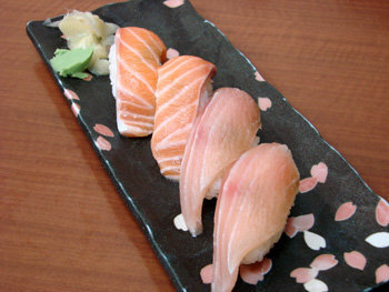 握壽司(80元)雖然只有四個不過都很大喔 生魚片也很新鮮