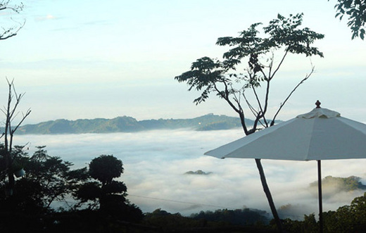 山上雲霧多變,晨起或雨後常見雲海起伏於山頂山澗之間,任意捲曲伸展,奇妙雲山,一半煙遮,一半雲埋,彷彿篷萊仙島!夜晚,台中盆地的燈海夜景,如閃亮星鑽,如珍珠琉璃,夢幻美景,令人陶醉,真不知自己身處天上還是人間?