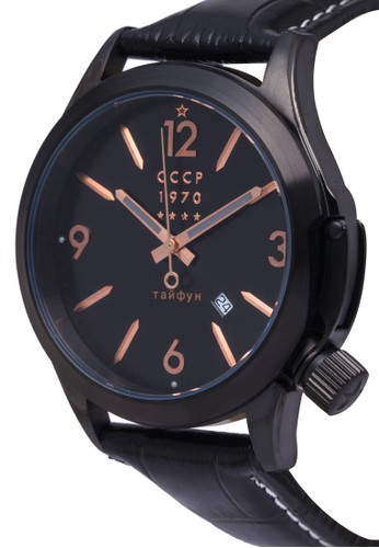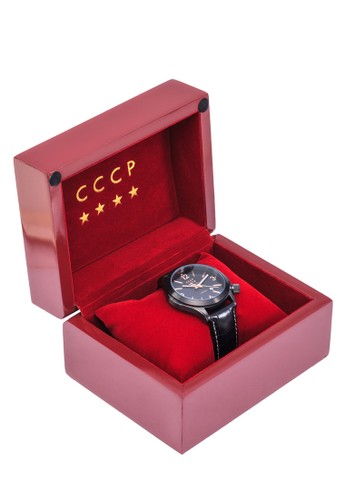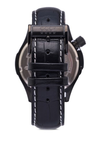 CCCP 的Schuka 行針皮革錶,以二戰時期蘇聯潛水艇命名系列,採精準度極高的石英機芯搭配黑色裱框,有數字與刻度顯示,設計簡約明了且非常實用。