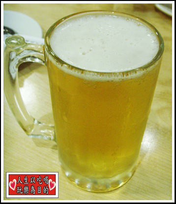 首先,一定要來杯生啤酒暢飲一下(小杯,NT.35元),清爽甘甜的滋味,著實令人痛快。當然,喝酒不忘吃點東西墊肚子。