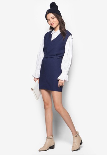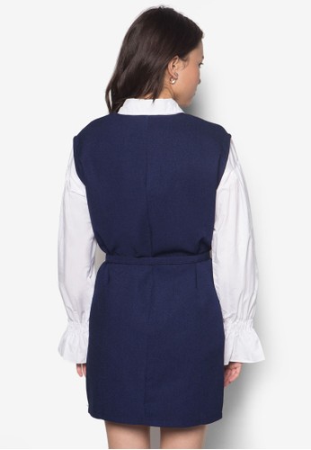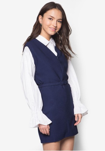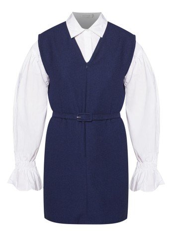 KLEEaisons 的兩件式撞色拼接連身裙,V 領直筒連身裙結構,搭配純白傘狀束口長袖,彷彿回到青春校園的俏麗甜美。 連身裙 - 棉 - V 領 - 無袖 - 隱形前拉鍊開襟設計 - 附腰帶 - 標準裁剪 - 無內襯 內襯衫 - 棉 - 襯衫領 - 長袖 - 前排鈕扣開襟設計 - 標準裁剪 - 無內襯