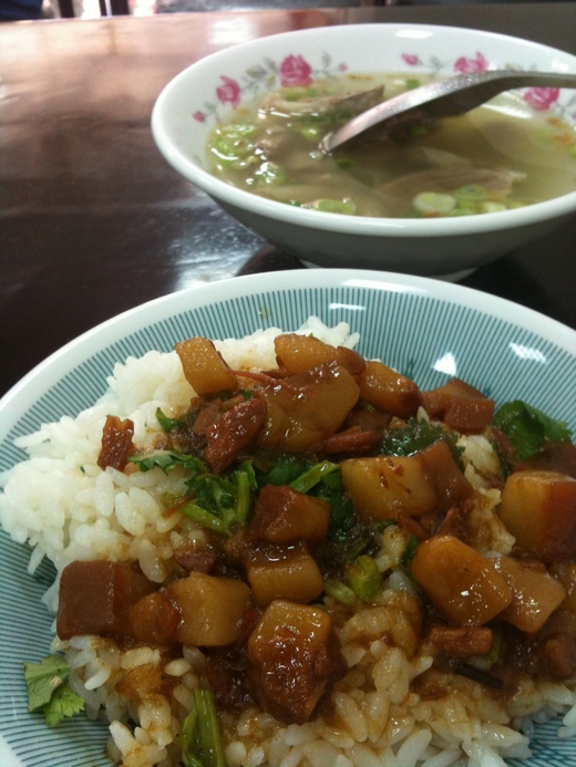 真懷念以前在橋頭菜市場內擠在小小桌子上吃肉燥飯的感覺,