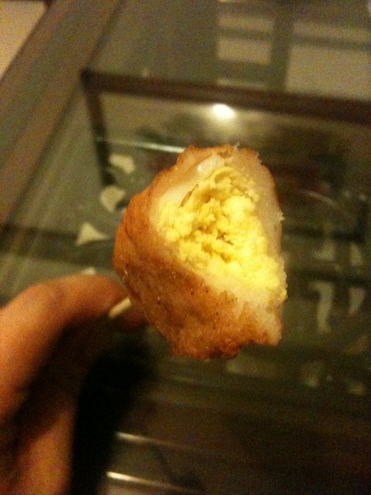 光看它那白皙的魚漿把1/4的水煮蛋包裹的樣子,
