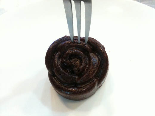 微熱的布朗尼蛋糕用叉子吃會有點小坍塌,