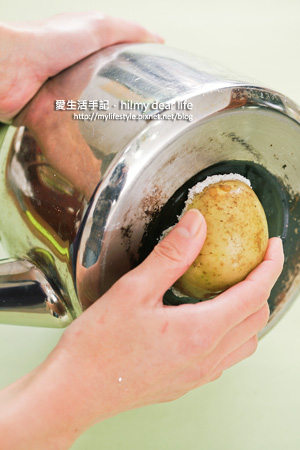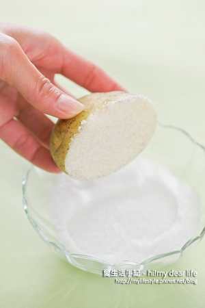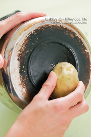 Tips 馬鈴薯中所含的澱粉可以有效去除油垢,再加上鹽的顆粒,所帶來的研磨效果,視汙垢的髒汙程度,讓去汙除油一次搞定!