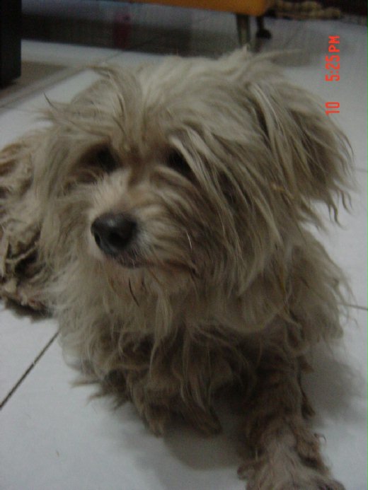我在外面流浪一個多月,全身的毛都打結了,不注意看,還以為是丟在路邊的抹布,而不是一隻狗……難怪大家叫我抹布,我就一笑置之吧!