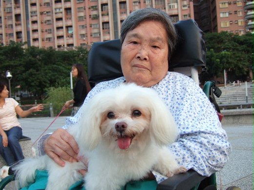 為了奶奶只好強迫不愛散步的NO NO到公園,奶奶的臉上漸漸的紅潤了,也有了笑容,NO NO總是乖巧的偎在奶奶的懷裡….。