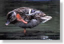 當牠飛越過這群鴨子時 好多鴨子引頸而望 喃喃自語