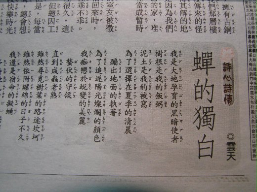 35樓. 紫楓(紅拂女)2007/07/01 15:44蟬的啟示