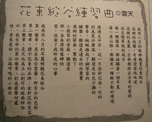 花東縱谷練習曲--2009年5月5日刊登於更生日報副刊