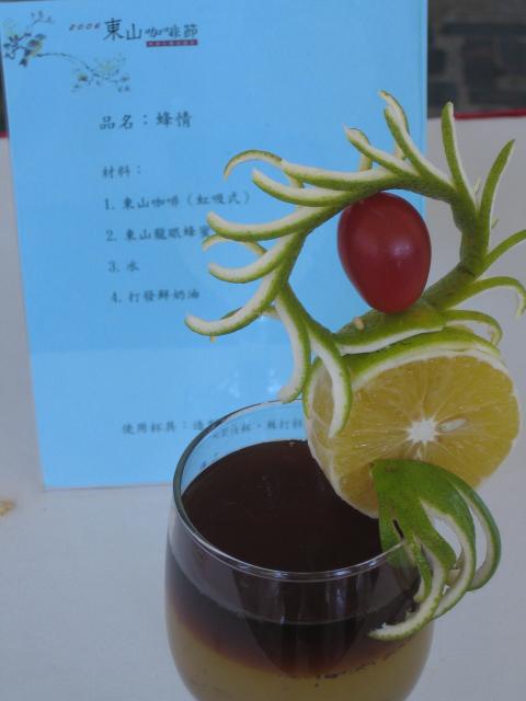 95年11月5日遊東山咖啡節,鑑於主題咖啡「午后閒情」及咖啡創意表演「拉花與雕花」,有感而抒。