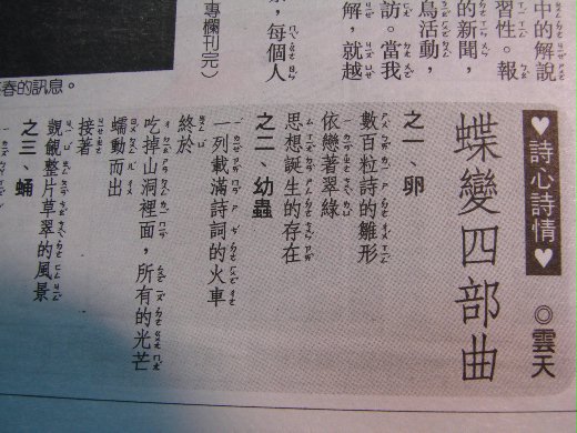 1、這首詩於96年3月12日刊登於國語日報(少年文藝版)。