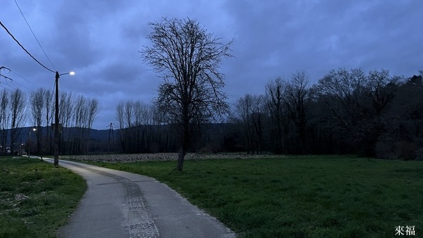 行間多是獨行, 在林裏, 在鄉間, 在村腳, 晨昏摸黑而行, 或翻山, 或越野, 有時也人車爭道. 年歲大了, 毫無懸念地捨棄了庇護所和粗食苦行, 一路好眠好食; 偶遇狂雨陣風, 也能安步.