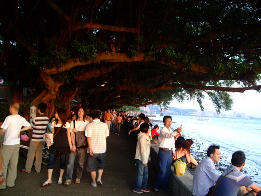 我在傍晚到夜裡淡水的接上看到三個出家人。第一個是尼姑,20來歲,帶著眼鏡,大眼睛雙眼皮,未出家前想必是漂亮的女大學生,又聰明又美麗的那種,或許是看透了什麼、或許太聰穎了、或堅定決絕了。她拿著砵,含蓄地慢慢地在人潮中面對我走來和我擦肩而過。第二個是一位中年和尚,坐在熱鬧的街入口的中央,拿著砵,也是靜靜地。我現下突然想起,這條街有一兩位殘障人士,驪黑的皮膚,或者斷了手腳趴在地上,不同的是他們手上是凹凸不平的鐵碗公,不是莊嚴靜肅的砵;他們要的是生存而不是普渡眾生不是修行。算了,我不想深入區分他們的不同。第三個是在我回程到渡船口時,是一位尼姑。她也是一邊走一邊化緣。這一位比較積極。她會靜靜地走到商家或坐在街中椅子上吃東西的路人面前,站定,深深地、規規矩矩地一鞠躬,也不說什麼。路人商家老闆多半沒有捐出錢來,她也不說什麼,好像理所當然他們不會捐錢一樣。我似乎看到了她的微笑。一切隨緣。在這樣充滿五光十色的街上,有太多的美食、太多漂亮太多好玩的東西、太多音樂、太多情侶、太多娛樂嬉鬧的享受人間物慾的人們。她,一個尼姑,也在這樣的街上,普渡眾生;或者說,這是身為一個出家人的「工作」,這沒什麼;一如商家的工作人員,人家週日放假出來玩,他們得在週日服務出來玩的人群。或者那些出家人,他們平日在山中的寺廟裡過得很快樂。