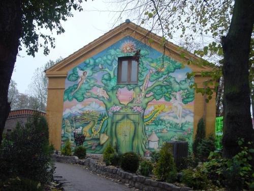 這裡有很多文化藝術空間,歌劇院(其實搖滾樂上演得比較多)、兒童劇院、爵士俱樂部、馬戲棚、滑板俱樂部、畫廊,有的是地方玩,Bob Dylan、Sonic Youth、Einsturzende Neubauten這些大牌都來過。一些酒吧有常設的表演,低成本、低收費,想演就去申請。不賣酒的月亮漁夫酒吧是最著名的一間,長期徵集義務表演,最近正在做印度慈善活動。七○年代以來,克利斯蒂安娜是哥本哈根地下藝術和政治藝術的一個溫床,它縱容了各種窮藝術家、年輕人和邊緣文化。我走進傳說中的gay house-boessehuset,裡面空無一人,一片簡單而性感的黑色裝飾,一些含蓄但妖艷的椅子,一個可愛的、鬍子拉碴的男同志出現,拖著一盤二手飾品,給帶我進來的朋友看。三十年來,這裡開辦了太多的party,舉行了太多的展覽和表演,用性別政治並不能概括其中的浪漫和傳奇,這是一個典型的景觀空間。