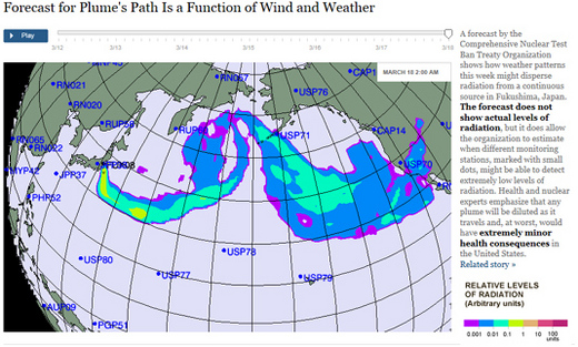唯一比較好的消息是台灣在福島南偏西約兩千多公里外的遠處,而福島當地現在是吹西風或西南風,會搭上太平洋環流帶,由西往東吹往加拿大與美國吹,預計福島核電廠第一次氫爆的輻射物周六(就是明天)會到達美國西部(南加州)。等它繞地球一圈,能真正到達台灣的量,就真的是微乎其微了!大家不必擔心。