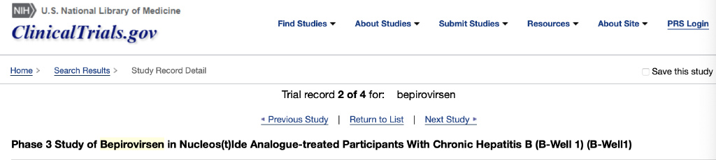 B肝在研新藥bepirovirsen,已啟動兩項3期,分別是B-Well 1和2