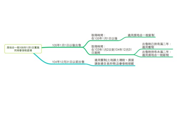 一、105年1月1日以後買入的房子,俟後再行出售,一律適用房地合一稅(新制)。