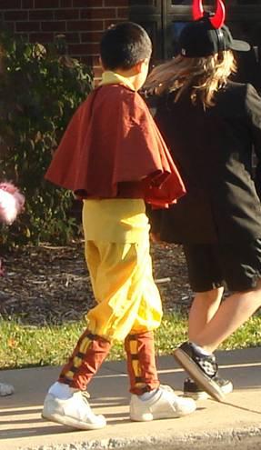 久久之前,兒子就已經說好要當 "降世神通"裏的Avartar。上網找了許久,有Avartar的衣服,卻沒有兒子的尺寸。於是,兒子希望我幫他做一套。