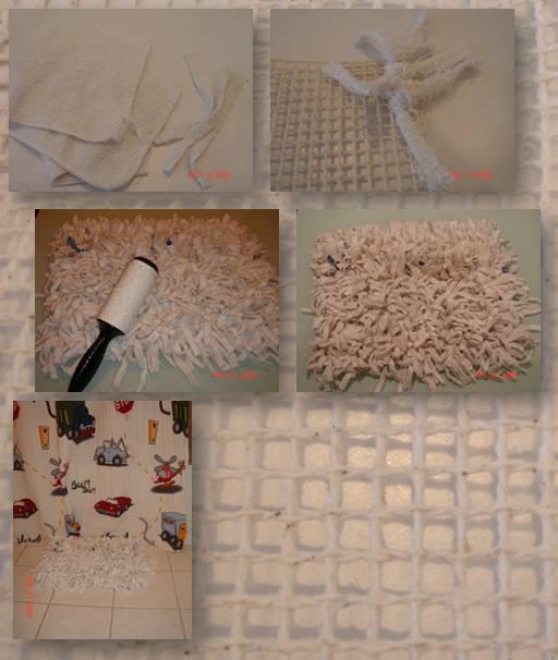 **每次剪布,不剪超過一條抹布,因為手實在是痛...每次綁布,不會綁超過一條抹布的量,因為指尖要塞布條到網洞內, 也是沒法一次撐太久...這我都可以接受的..最可憐的是每次開始做就打噴嚏...黏膠滾筒在一旁伺候著...隨時沾粘掉下的毛削..