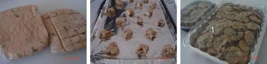 **沒用完的餅乾糊可以用保鮮膜裝起來冷凍。要用前一天拿到冷藏退冰就可以了。冷藏過的餅乾糊比較硬,更好操作。。黃臉婆是隔著保鮮膜,用刀子切成一格格的來烤。