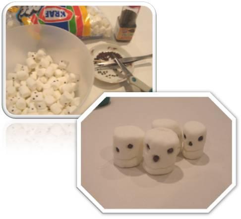 用聶子選出長度適合的巧克力裝飾塞入眼睛跟鼻子裏頭(Sparkler 有條狀的跟粒狀的)。