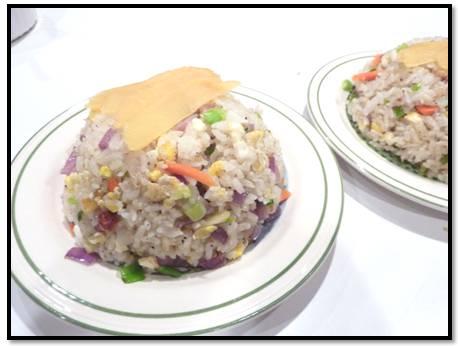 冰過的飯下鍋炒之前用手抓散。。再把調味過的蛋還有蔬菜丁倒到飯內扮勻。。