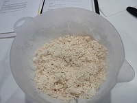 然後開始加冷水,拌到麵糰便成光亮表面
