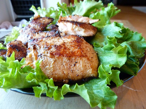 鮭魚 -- 切成喜歡的大小用鹽小醃片刻