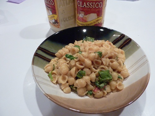 這就便宜我了,因為兒子已經不愛吃粽子了,所以我就把剛買的義大利麵醬罐頭拿出來。。上回打折買的貝殼麵下了半包。。這就成了兒子的晚餐了。。還剩下不